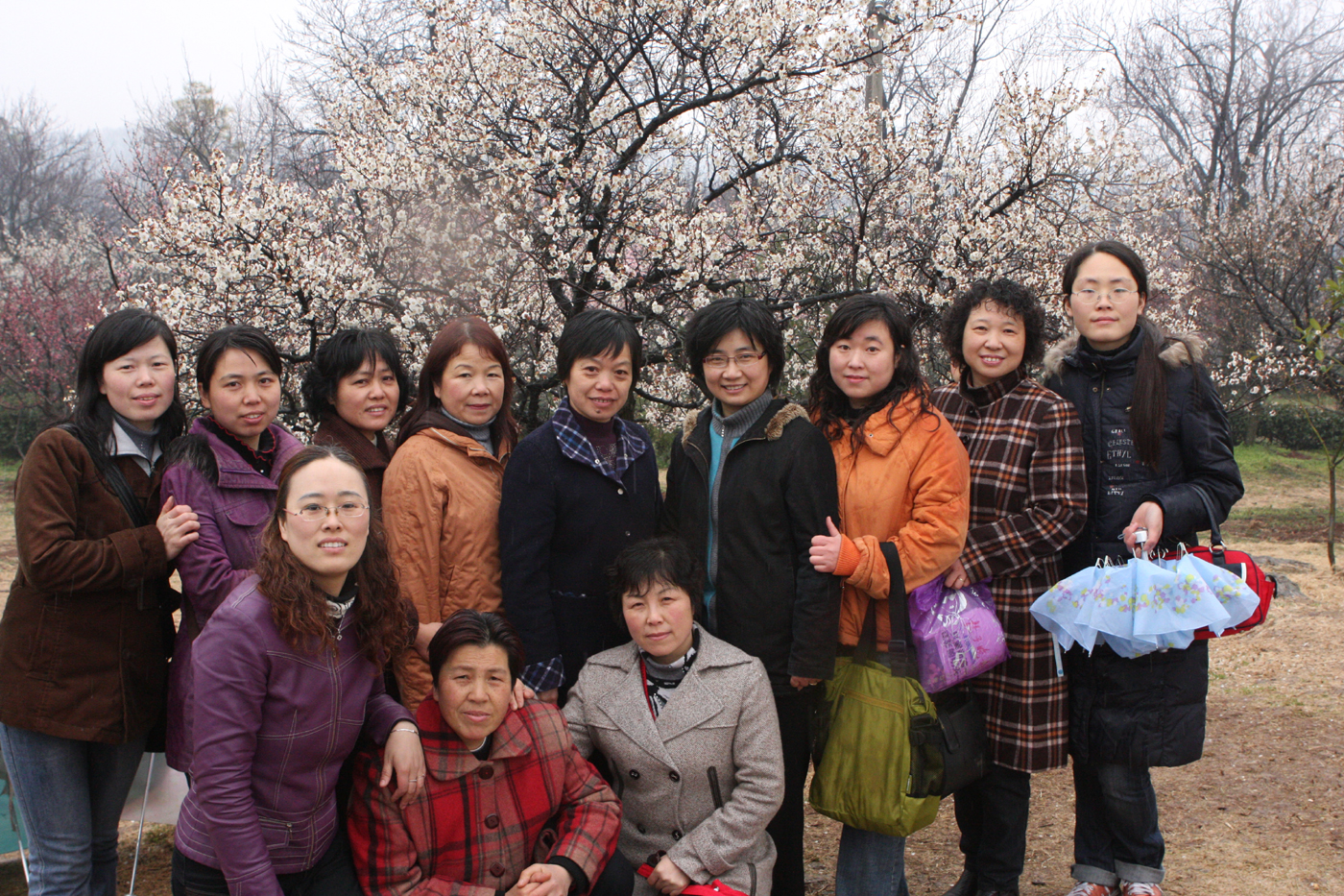 在春雨的滋润下,梅花山上万株梅花蓄势待发,含苞初绽;山顶的部分梅树和一些早梅已经花开满枝。女职工们在这欢喜的节日里,欣赏着梅花山春意盎然的景象,尽情地享受大自然的美好景物,斜风细雨丝毫没能减少各人欢喜的情致。